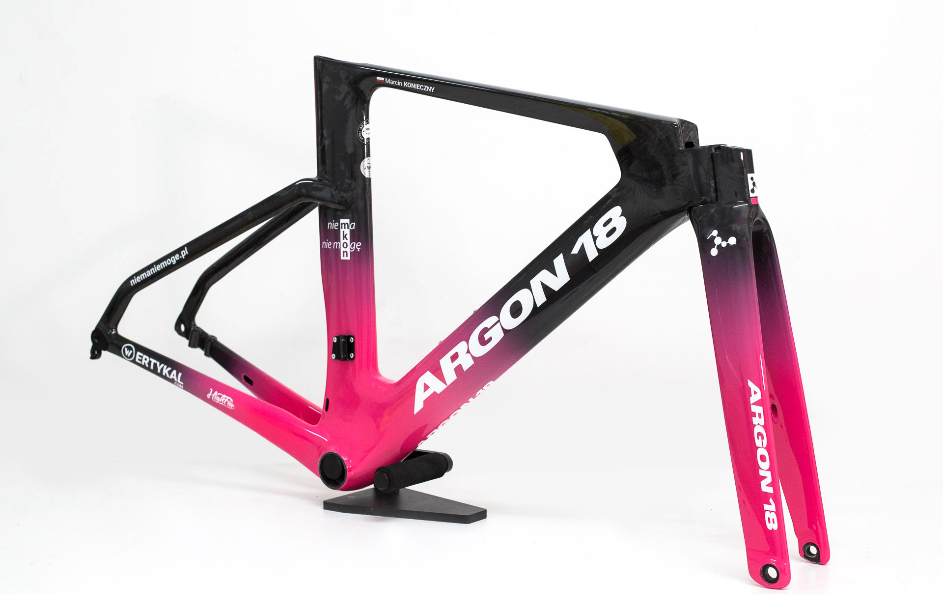 Kolejna realizacja dla sklepu rowerowego wetykal.com - rama Argon 18 E118 Tri Plus Disc, przygotowana specjalnie dla MKON'a na Mistrzostwa Świata. Kolejnym razem dostaliśmy wolną rękę aby stworzyć customowe malowanie.