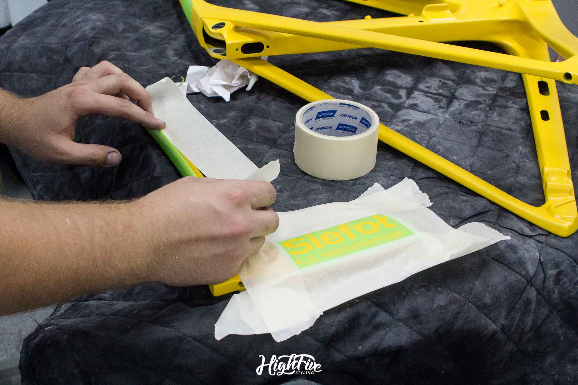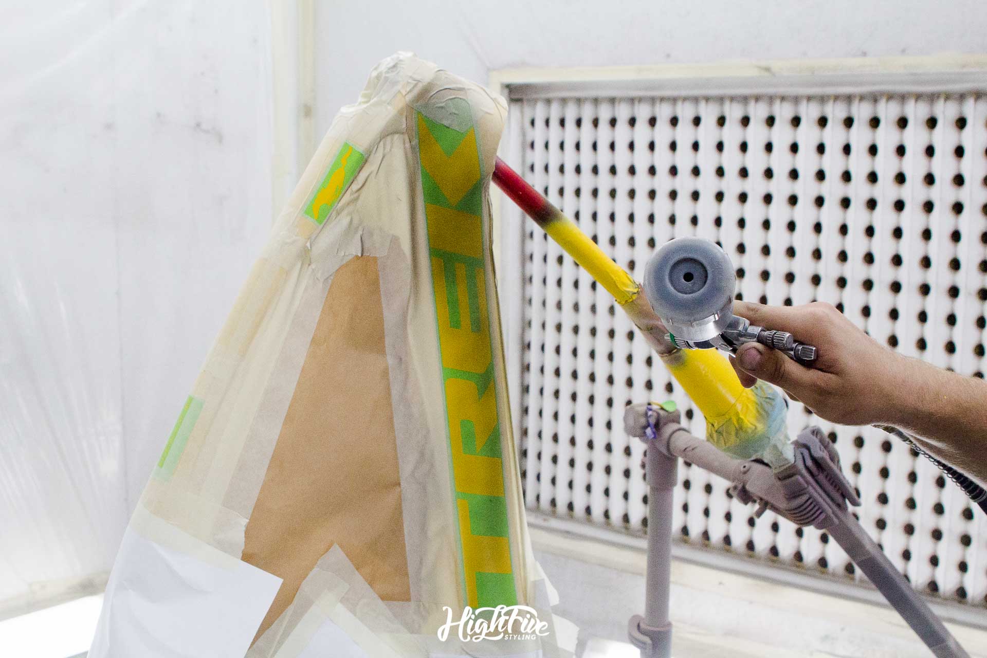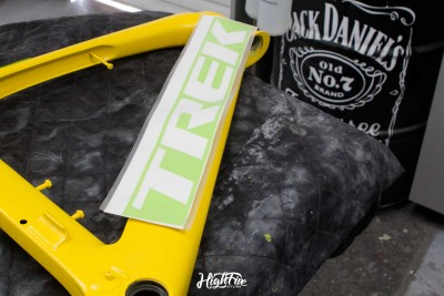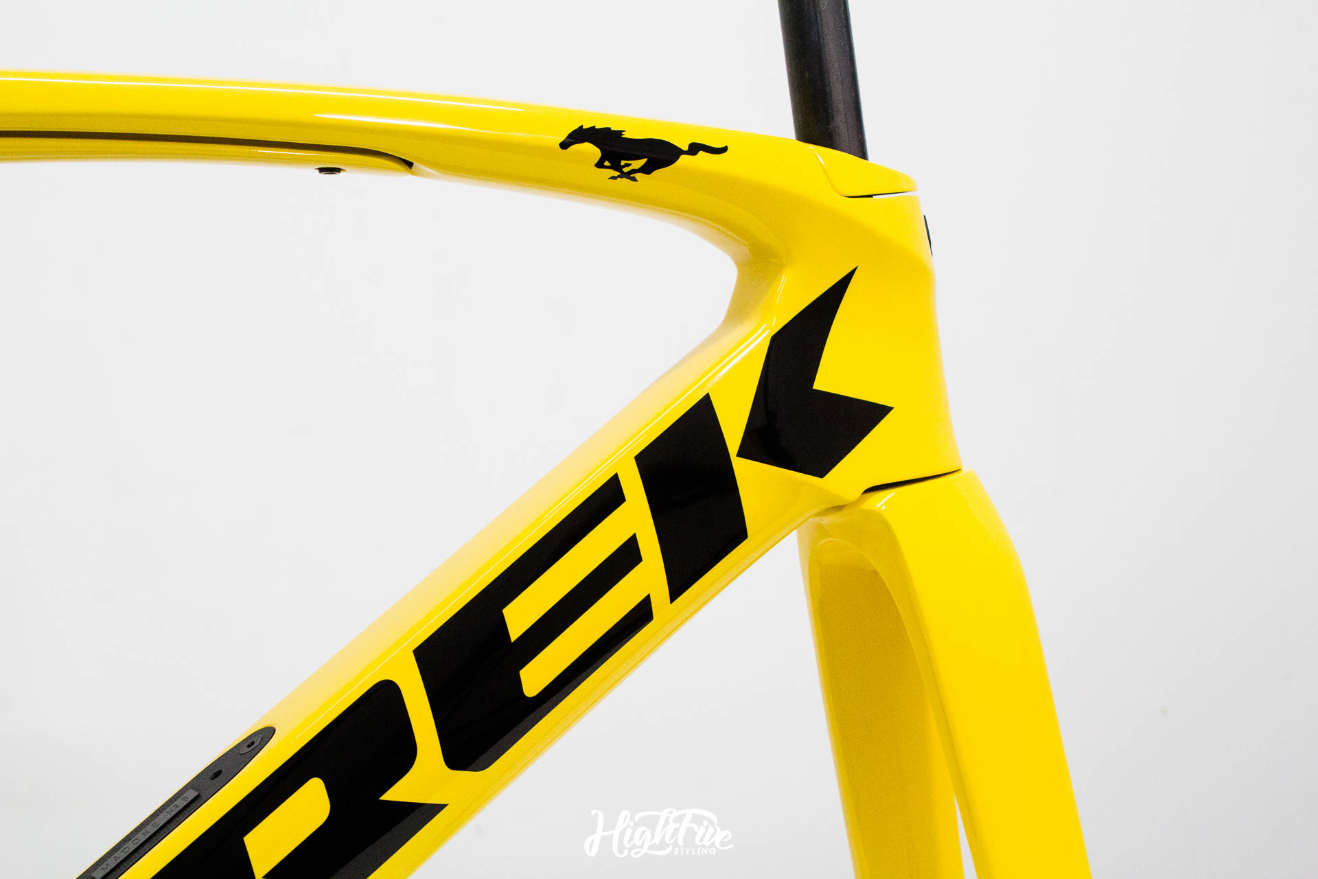 Naszym zadaniem było pomalowanie praktycznie nowego Trek Madone tak aby pasował kolorystycznie do wymarzonego samochodu klienta jakim był FORD MUSTANG.