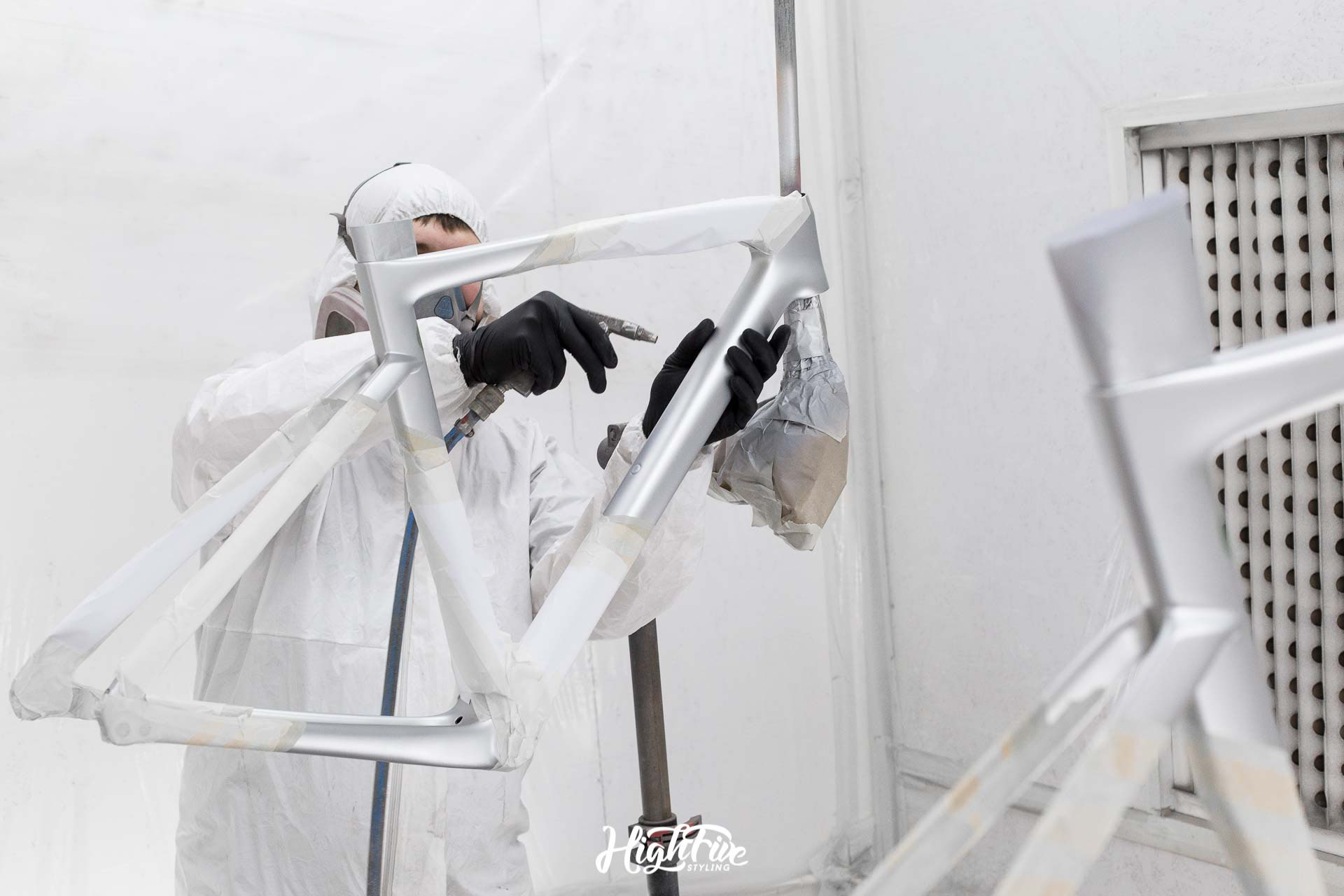 Malowanie ram S-WORKS Tarmac sl7 - to jeden z ciekawszych projektów jakie zrobliśmy. Dwa nowe framsety przyleciały do nas bezpośrednio od producenta. Naszym zdaniem było zaprojektowanie grafiki oraz zdjęcie oryginalnego lakieru do gołego karbonu - celem było zaoszczędzenie 80 gram na ramie. Wykonaliśmy malowanie ram specjalną technologią LIGHT w celu zoptymalizowania wagi lakierów.