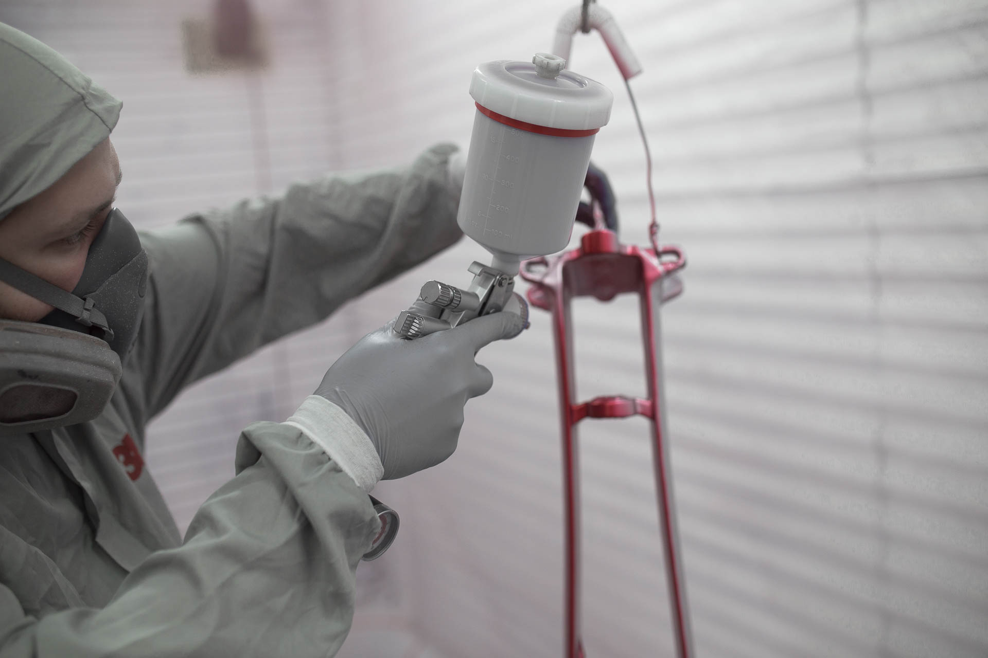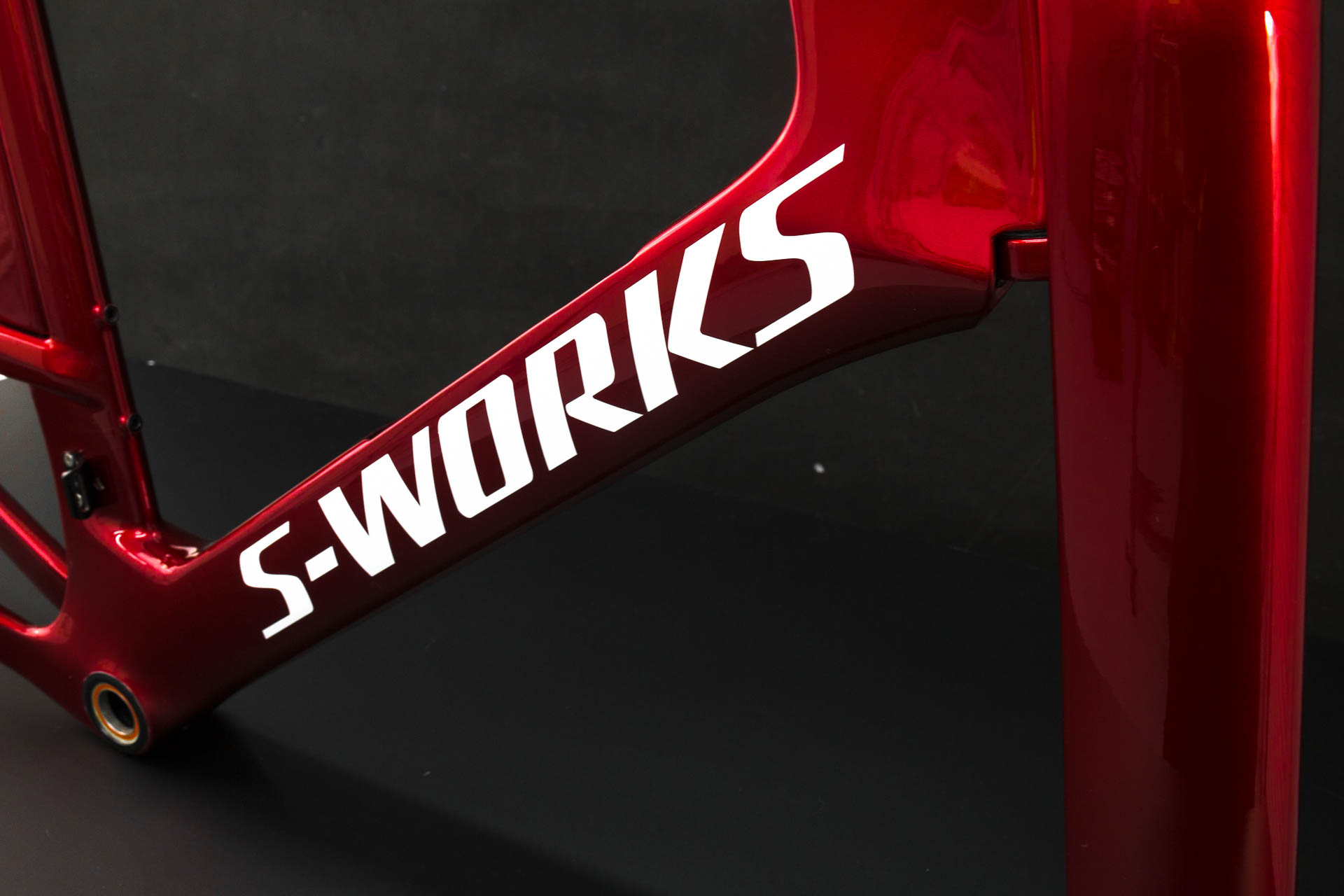 Po kosmetycznej naprawie rama trafiła do nas z firmy CarbonTech. Naszym zadaniem było uzupełnienie grafiki "S-works" + dobrania lakieru do reszty roweru, po wielu dniach i setkach prób niestety nie udało się dopracować takiego samego koloru, kolor bardzo zbliżony do oryginału składał się z bardzo drogich barwników gdzie malowanie jednostkowe ramy dla klienta było nieopłacalne. Zaproponowaliśmy nasz limitowany kolor z palety ULTIMATE COLORS jakim jest "cherry furious red" to kolor trójwarstwowy o niesamowitej szklistości końćowej. Końcowe słowa klienta " te 500sztuk powinny być właśnie w takim malowaniu" - całość wyszła przepięknie!