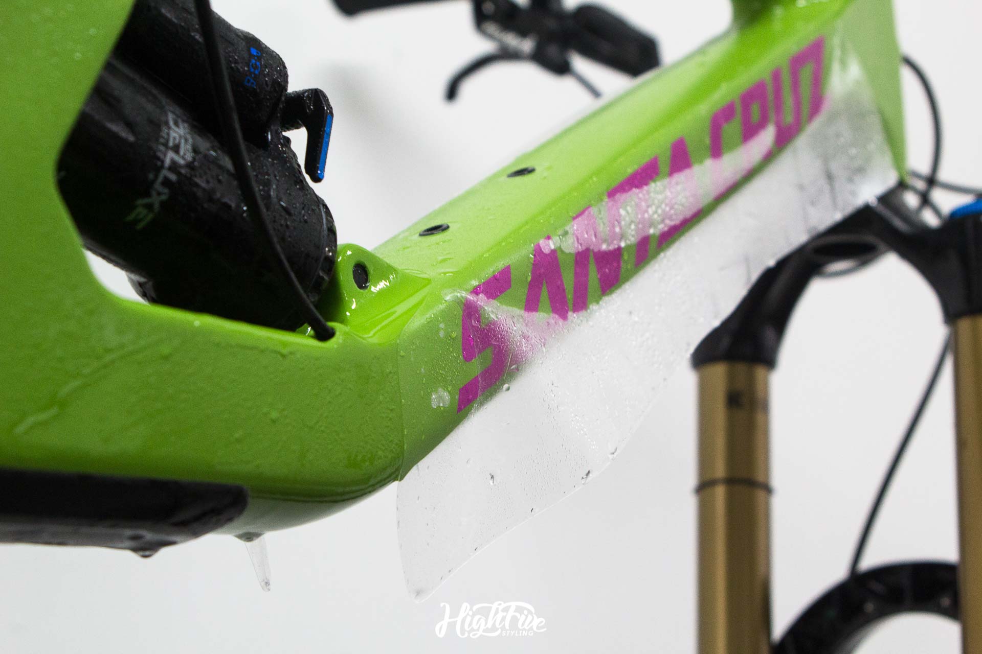 Kompleksowe zabezpieczenie ramy Santa Cruz Nomad C folią ochronną matową oraz przedniego amortyzatora.